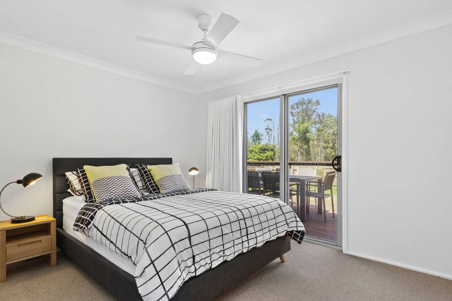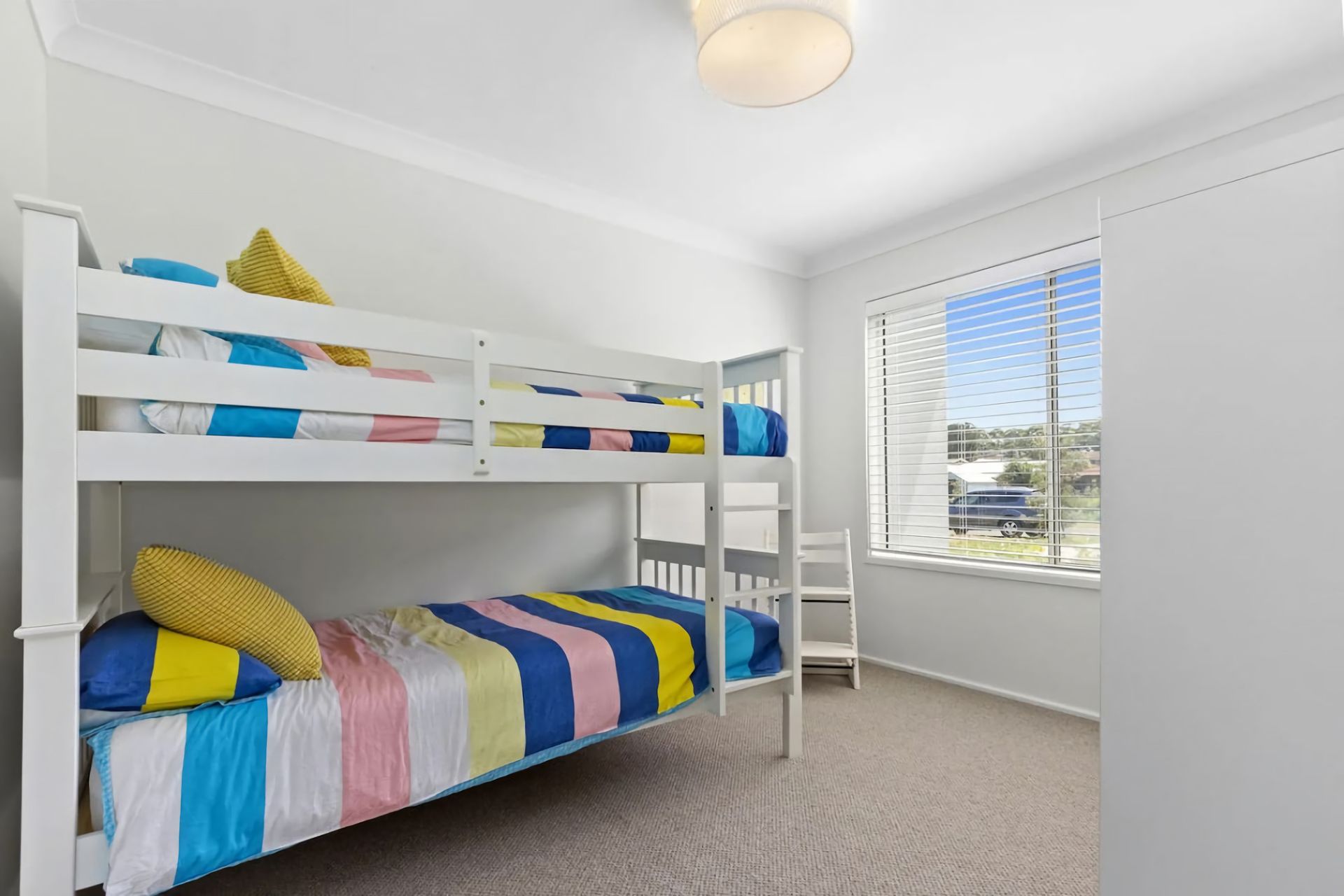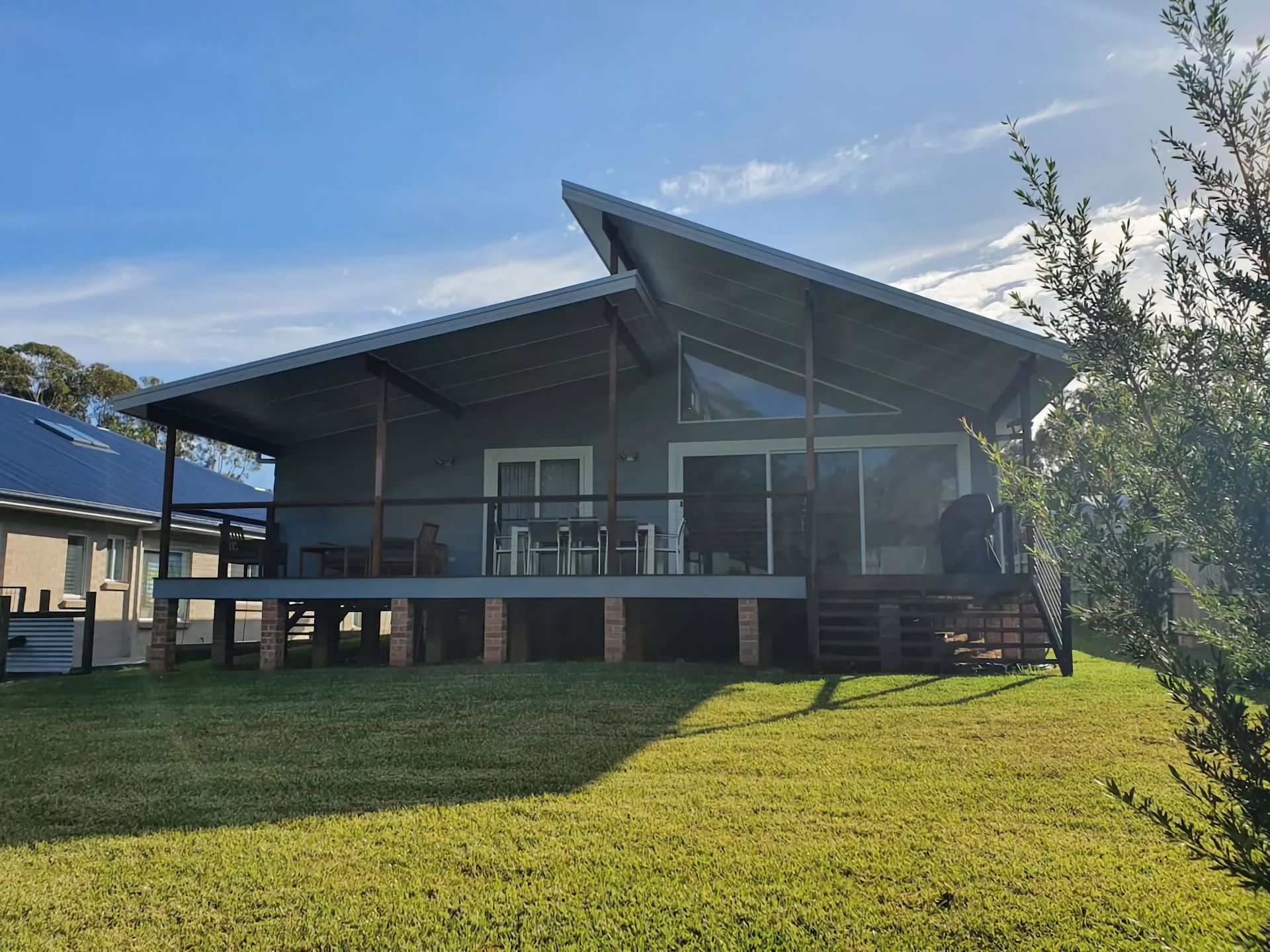 Modern, light and airy with high ceilings to let the air floor through the full opening sliding doors from the entertaining area, this lovely home has 4 bedrooms including 2 queen rooms and 2 bunk rooms as well as 2 bathrooms, all tied in beautifully with an open plan living room, dining room and kitchen.