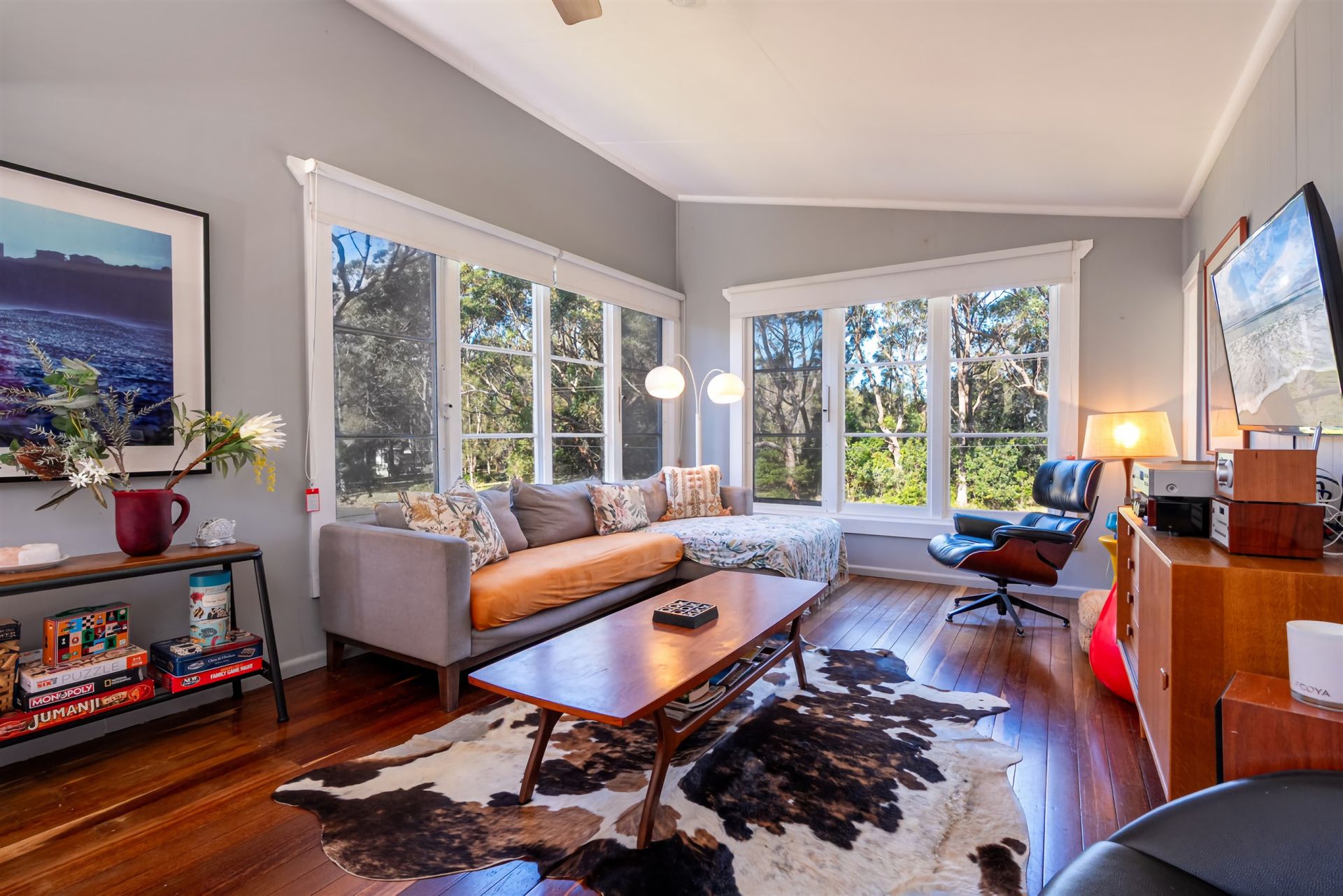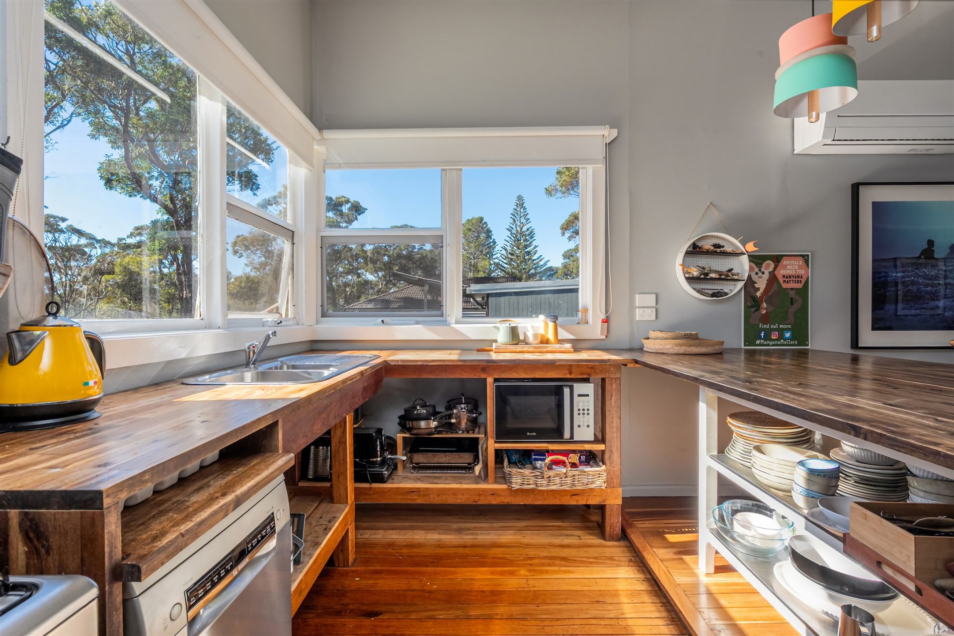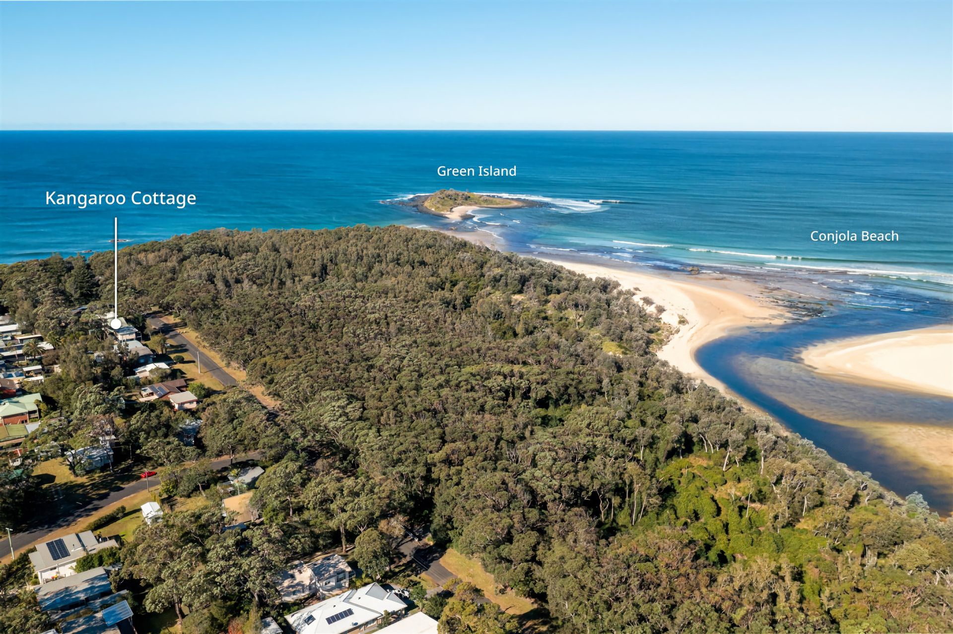 Kangaroo Cottage – Cunjurong Point Coastal GetawayRelax and unwind at this peaceful coastal retreat in one of the most sought-after locations for a family holiday. At Kangaroo Cottage, you’ll step out the front door and be just seconds from some of the best surfing, swimming, and fishing spots on the NSW South Coast. Green Island, a famous local surf break, is right on your doorstep—perfect for surfers chasing their next wave or those who simply enjoy watching the action from the headland.After a day at the beach, rinse off in the hot outdoor shower before settling on the rear deck. Light the fire pit and enjoy a cosy evening under a sky full of stars, listening to the waves and the distant sound of the ocean. In the morning, pop around the corner to the local café for a fresh coffee before setting off on your walk.Kangaroo Cottage comfortably sleeps up to 8 guests across three bedrooms. Two main bedrooms are located upstairs, while the spacious third room downstairs features two sets of bunks—ideal for kids or larger groups.Set on the headland at Cunjurong Point, this original coastal cottage is steps from lush bush tracks leading to sparkling Lake Conjola. This pristine lake is a haven for families—safe for swimming, perfect for kayaking or paddleboarding, and boasting crystal-clear waters. Just a short stroll away, you’ll find the headland lookout and the staircase down to Manyana Beach and Green Island.The surrounding area offers a unique blend of nature and tranquillity. Kangaroos are frequent visitors to the streets and gardens, hopping in from the nearby bush each day. The region’s peaceful, remote feel makes it perfect for a relaxing coastal break at any time of the year.Spend your days exploring: bushwalk along the scenic trails, swim at the beach, or simply stretch out on the sand with a good book. In the afternoons, return to your private backyard for a BBQ or gather around the fire pit with family and friends.Whether you’re here for the waves, the wildlife, or the peaceful pace of life, Kangaroo Cottage offers the perfect base to experience the very best of Cunjurong Point, Manyana Beach, and Lake Conjola. Once you’ve been, you’ll understand why this pocket of the South Coast is a favourite for those seeking a true Australian coastal escape.