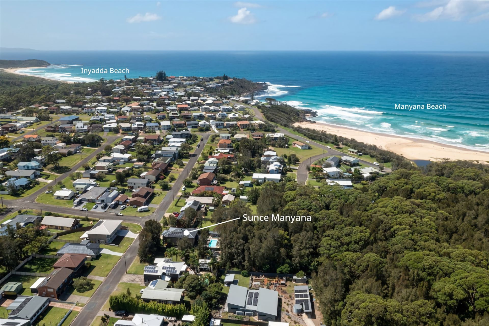 Sunce Manyana – Luxury Holiday Home with Heated Pool & Spa, NSW South CoastSunce — meaning sun in Croatian — perfectly captures the essence of this spectacular Manyana holiday home. Inspired by the sunny, scenic coastal regions bordering the Adriatic Sea, Sunce Manyana brings those bright, luxurious holiday vibes to the pristine South Coast of NSW.Just a few minutes’ walk from Manyana Beach and surrounded by the beauty of Conjola National Park, this architecturally designed retreat is the ideal base for your next South Coast getaway. Blending high-end features with a relaxed, welcoming atmosphere, Sunce Manyana is a place where couples, families, and friends can unwind in complete comfort.The centrepiece of the property is the heated swimming pool and outdoor spa, creating a private oasis you can enjoy year-round. Spend your days swimming, soaking, and lounging by the pool, then enjoy a glass of wine in the spa under the stars. Inside, the home features a stunning chef’s kitchen with premium appliances, open-plan living and dining areas, and stylish coastal furnishings. Large sliding doors connect the indoors to expansive outdoor entertaining areas, perfect for BBQs, alfresco dining, or simply relaxing in the sunshine.Things to do nearby:Surf world-class waves at Green Island and Cunjurong PointSwim or kayak in Lake Conjola’s crystal-clear watersVisit Bendalong Harbour to see and feed the friendly stingraysExplore bushwalking tracks through Conjola National ParkRelax on uncrowded beaches and hidden covesFor day trips, head to Milton for boutique shopping and gourmet dining, or to Mollymook for golf and luxury spa treatments. Jervis Bay and Huskisson are also a short drive away, offering dolphin cruises, cafés, and more stunning beaches.Manyana’s peaceful coastal village atmosphere makes it perfect for both relaxing breaks and active holidays. Kangaroos are regular visitors, hopping through the streets from the surrounding bushland, and the area is known for its pristine natural beauty.Whether you’re planning a romantic escape, a luxury family holiday, or a coastal retreat with friends, Sunce Manyana offers the ultimate South Coast experience — combining style, comfort, and location in one unforgettable package.Book your stay at Sunce Manyana today and experience the best of the NSW South Coast.Important Information; Please note that we only open the Spa for stays more than 5 night bookings. If you wish to request the spa for an extra fee , please indicate in your booking inquiry and/or messaging.